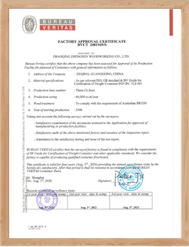 工廠和產(chǎn)品都通過法國(guó)“BV”認(rèn)證,“FSC”認(rèn)證和中國(guó)“CCS”認(rèn)證